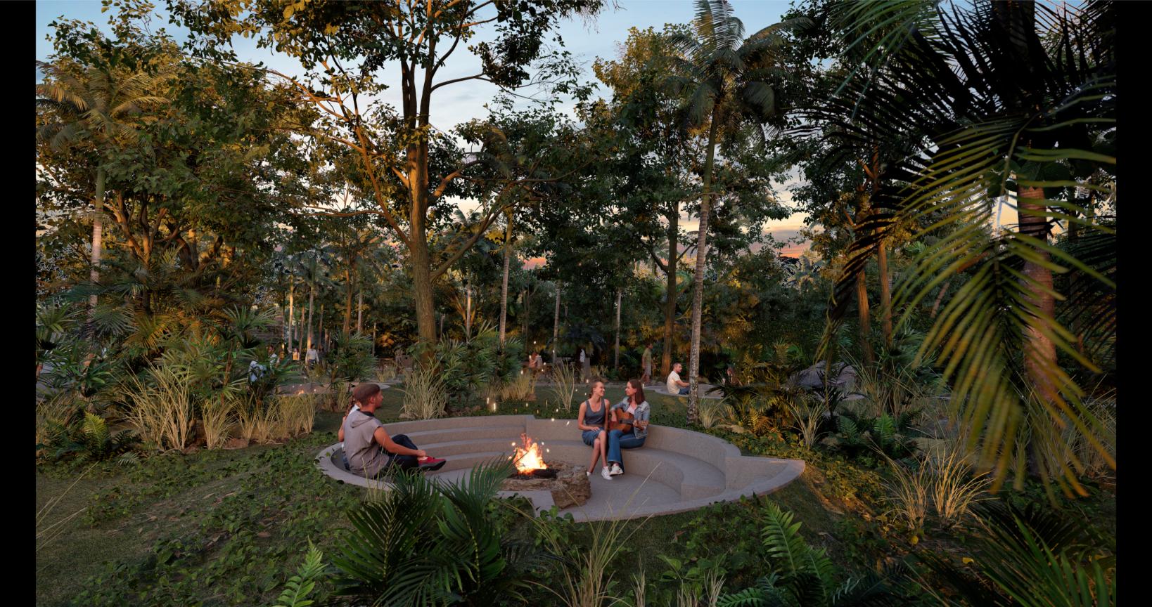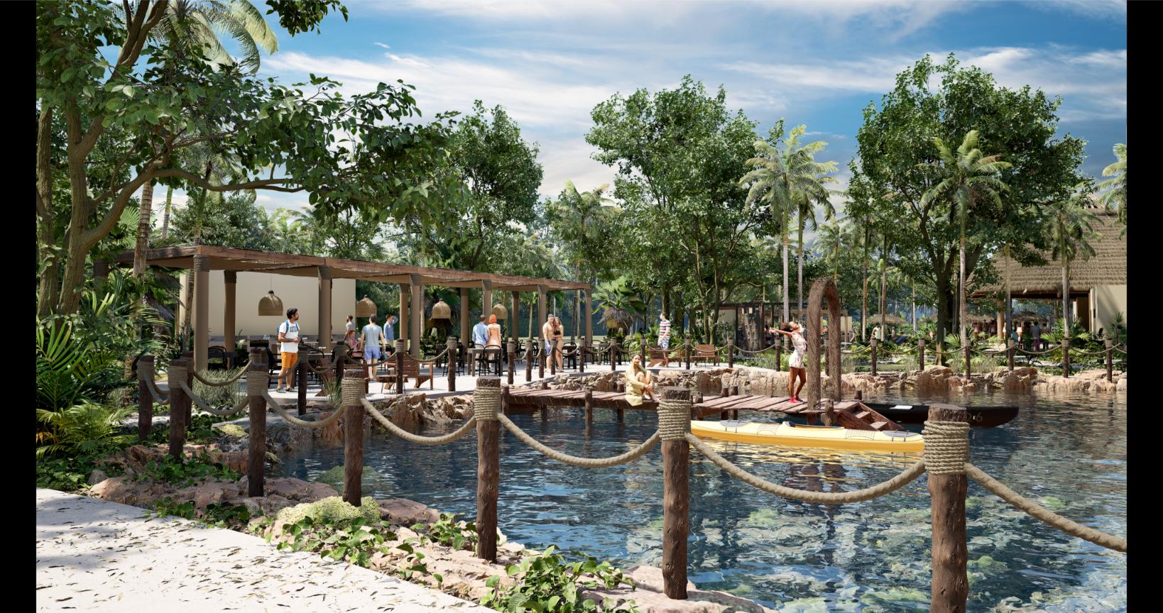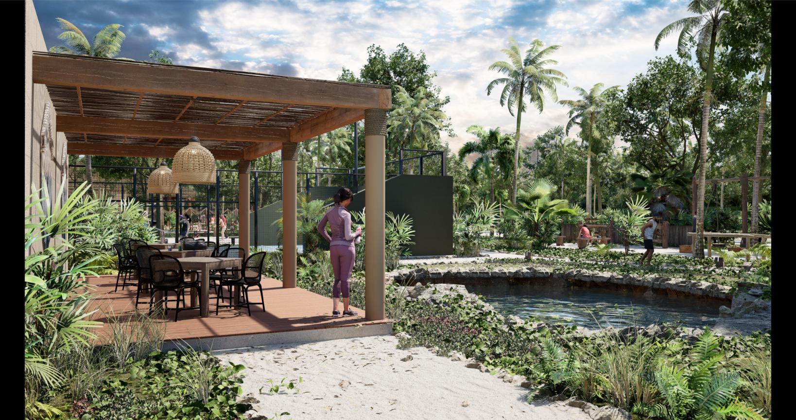 El proyecto cuenta con más de 50 amenidades diferentes agrupadas en secciones Sociales, Aventureras, Familiares y Deportivas.